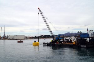 Il s’agit d’un coffre d’amarrage de couleur jaune de 2t et de 3m de diamètre. Il sera maintenu par 5 corps morts de 20t pièce par le biais d’une chaine à étais de 6,4cm de diamètre. Pour une meilleure tenue de l’ouvrage, 3 corps morts sont implantés à la verticale du coffre et les 2 autres sont situés 20m plus loin. Les blocs ont été bétonnés courant janvier, puis ont été laissés au séchage avant d’être immergés cette semaine. Le passage des aussières sera réalisé par les lamaneurs de Toulon, qui ne monteront pas sur l’ouvrage mais viendront s’appuyer dessus avec leur canot et crochèteront l’amarre. Le coffre et sa pose représentent un investissement de 310 000€HT.