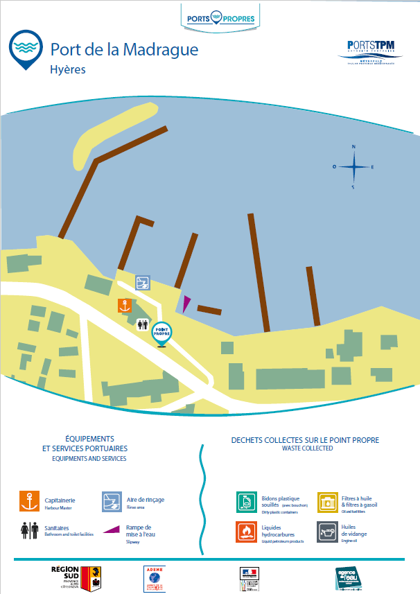Situé sur la façade nord de la presqu’île de Giens sur la commune de Hyères, le port de la Madrague est implanté à 2km environ de la plage de l’Almanarre.